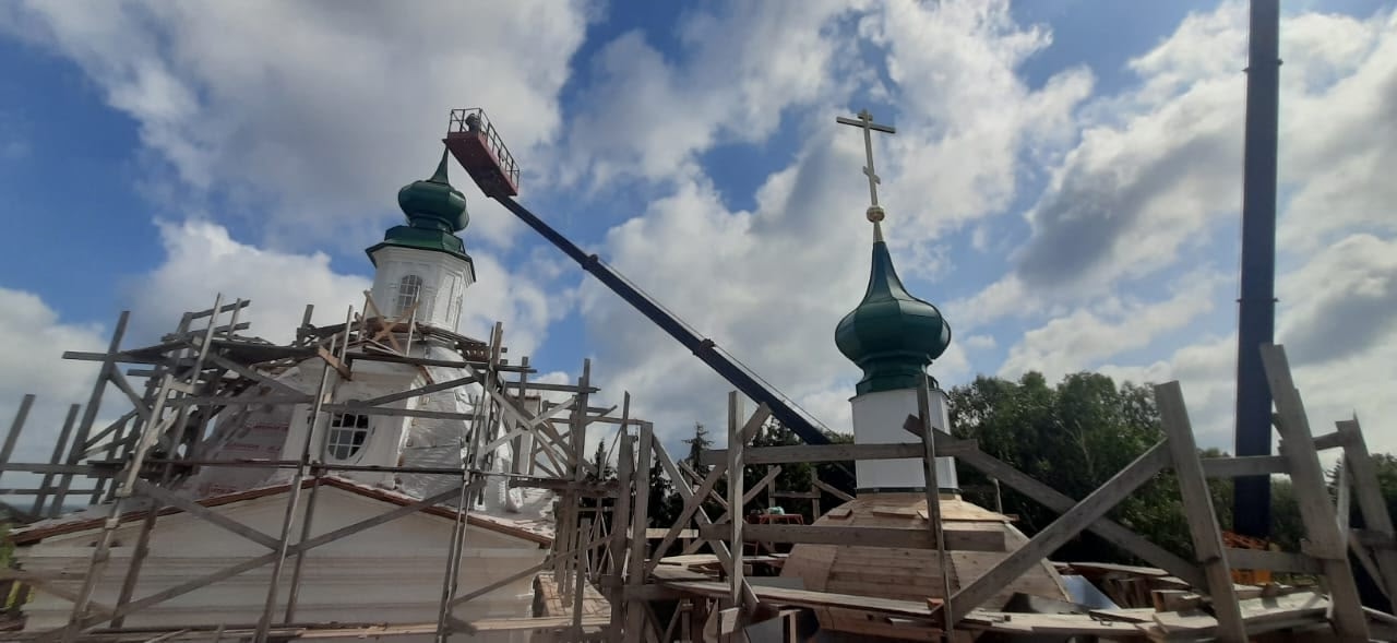 1 Полный размер 1280 × 589 пиксели Освящение и установка крестов на купола Успенского храма Предыдущее изображение Следующее изображение