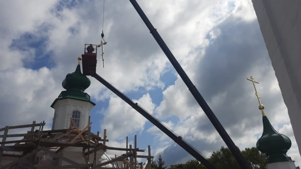 2 Полный размер 1156 × 651 пиксели Освящение и установка крестов на купола Успенского храма Предыдущее изображение Следующее изображение