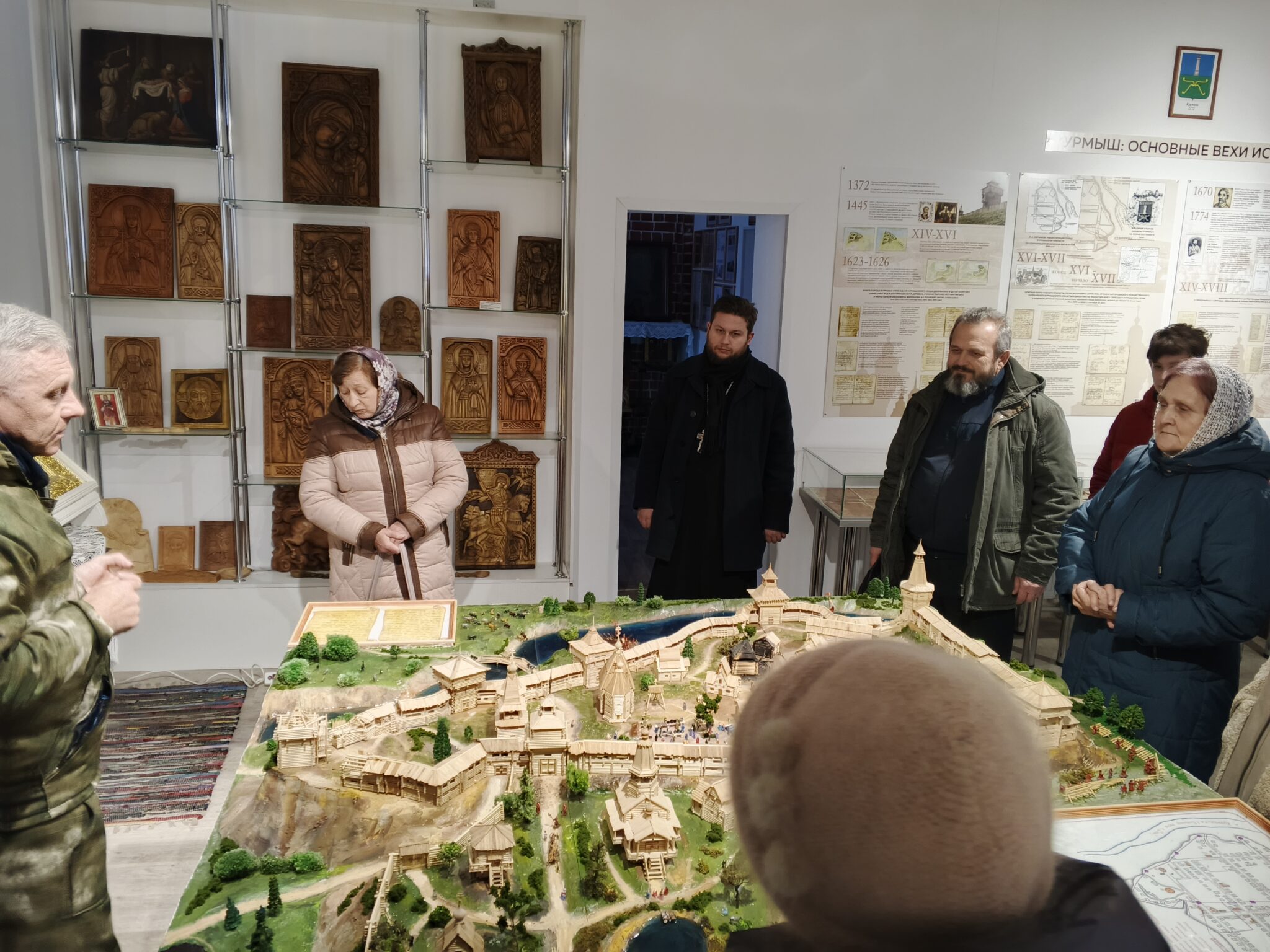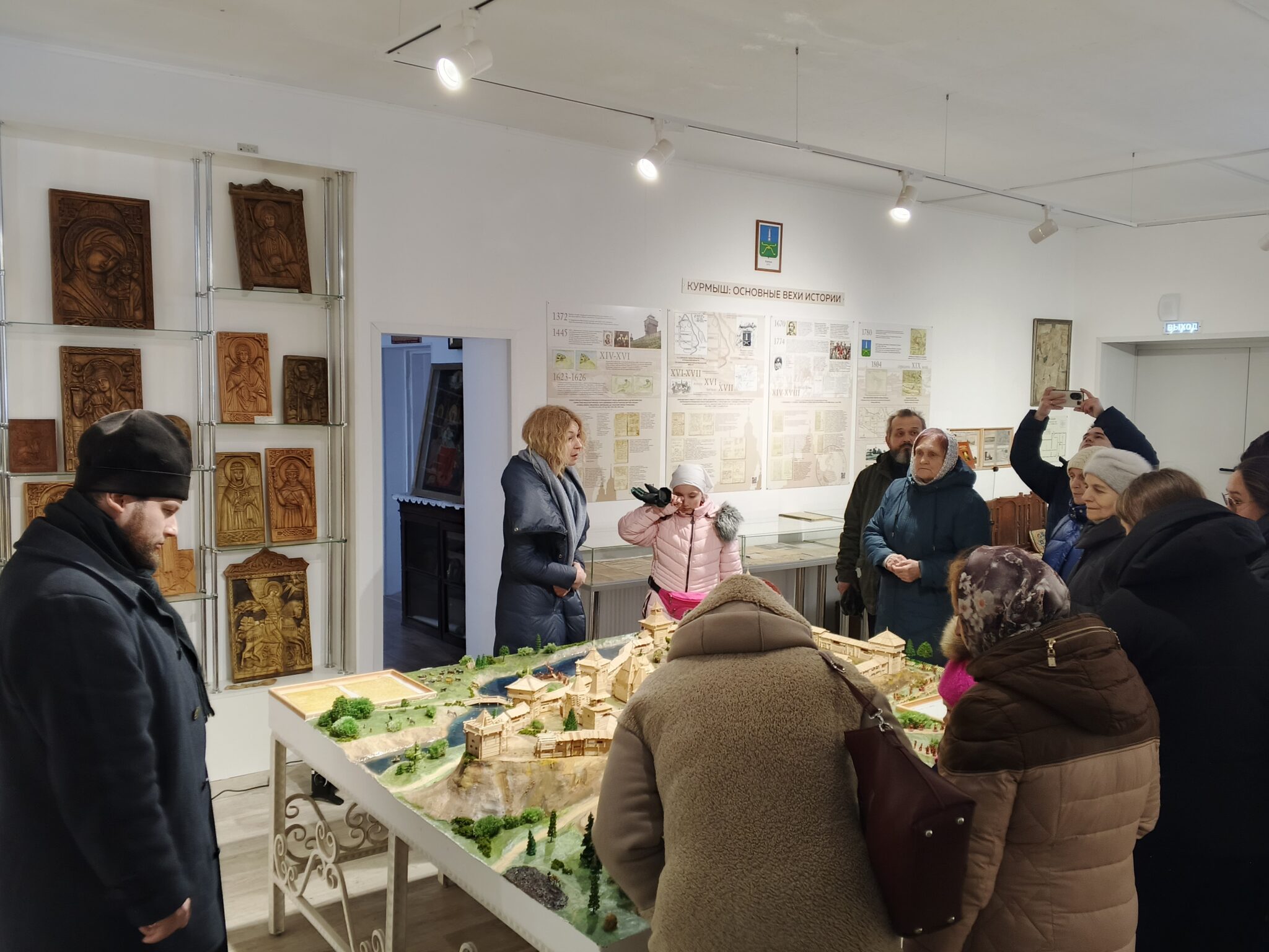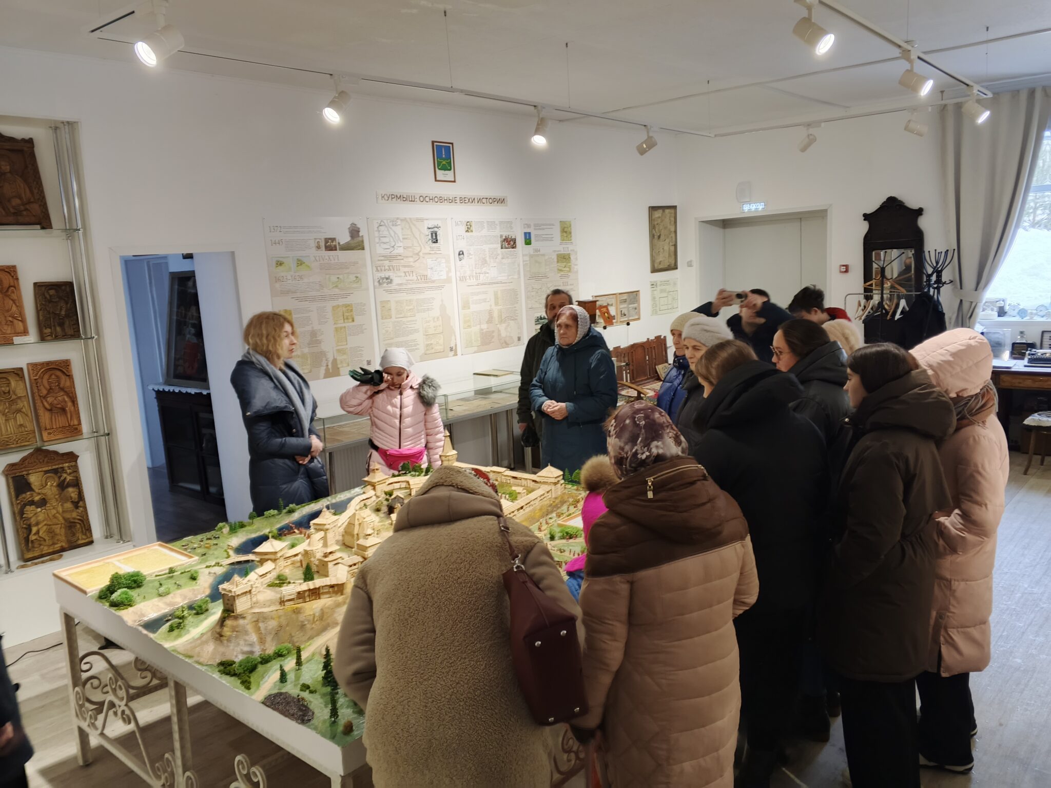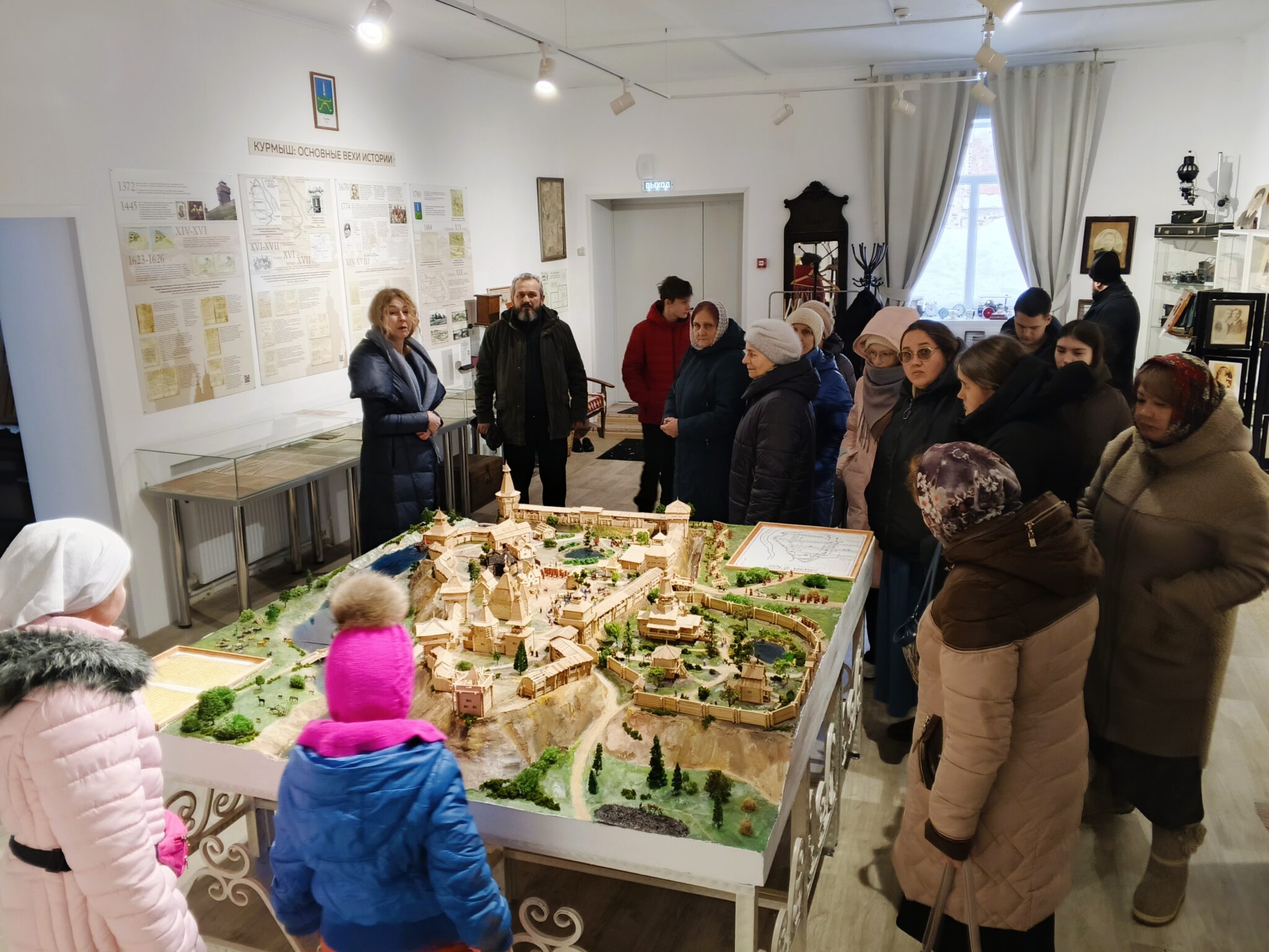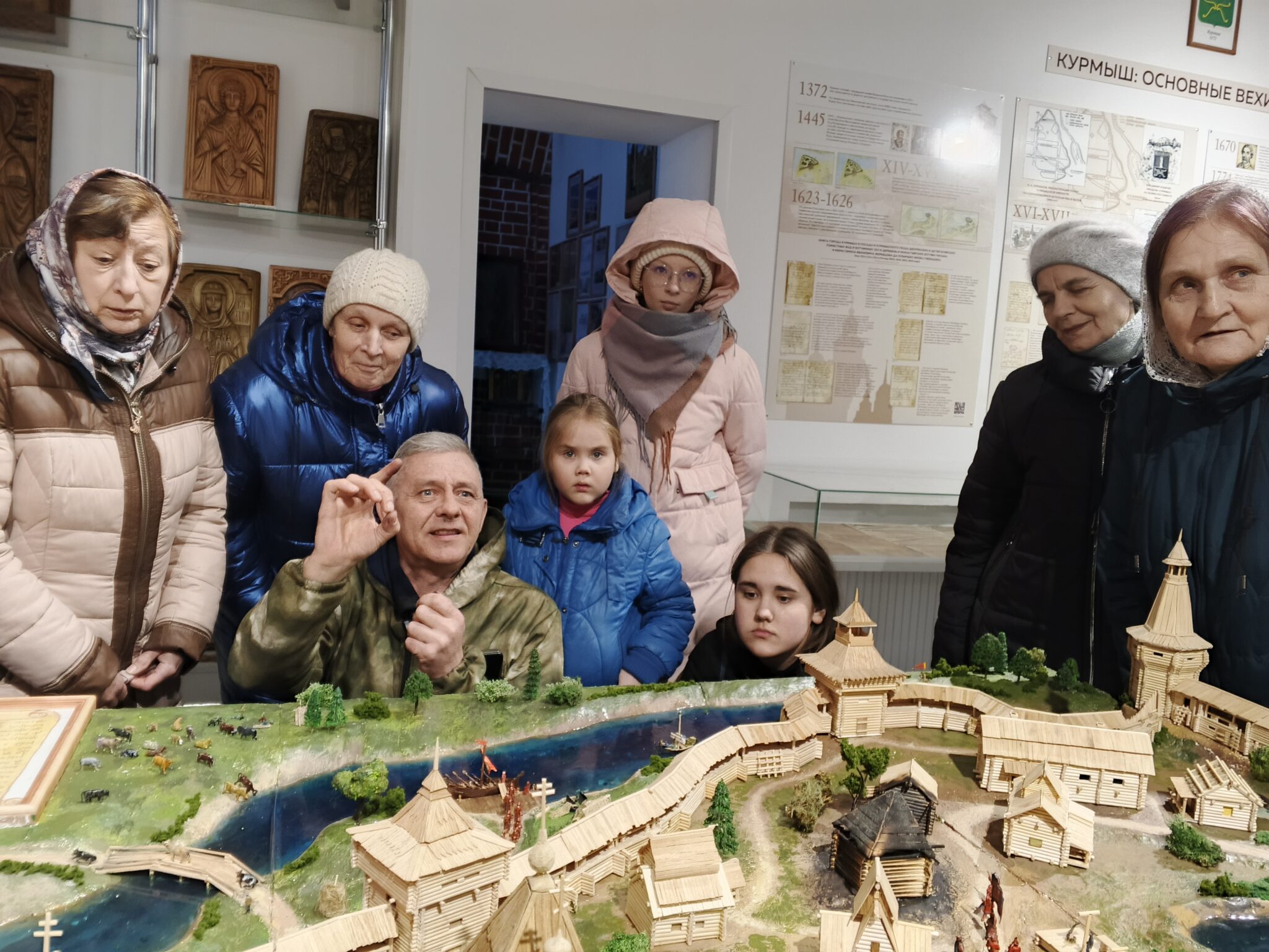 Долго-долго вместе рассматривали стенды, витрины, фотографии, старинные открытки, иконы, картины, исследовали волшебный макет курмышской крепости, заводили патефон, вместе удивлялись, печаловались и радовались.