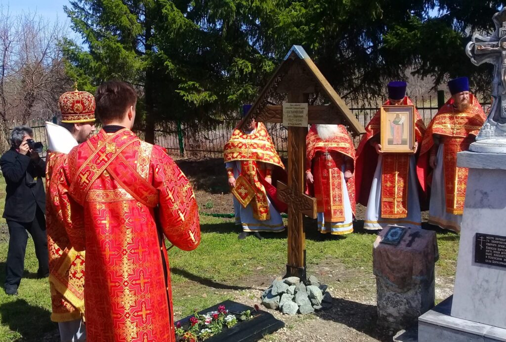 14. Могила Павла Вигилянского. Освящение Полный размер 2048 × 1383 пиксели История храма Освящение крестов на восстановленных могилах за алтарём Успенского храма. 4 мая 2018 г. Предыдущее изображение Следующее изображение