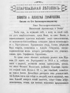Об этом см. также: Арнольдов Ф. Алексей Петрович Гневушев, священник села Бортсурманы Симбирской губернии Курмышскаго уезда // Дело «О причислении к лику святых иерея церкви села Бортсурманы Курмышского уезда А. П. Гневушева. ГАУО, фонд № 134, опись №8, дело 999. Лл. 100, 101.